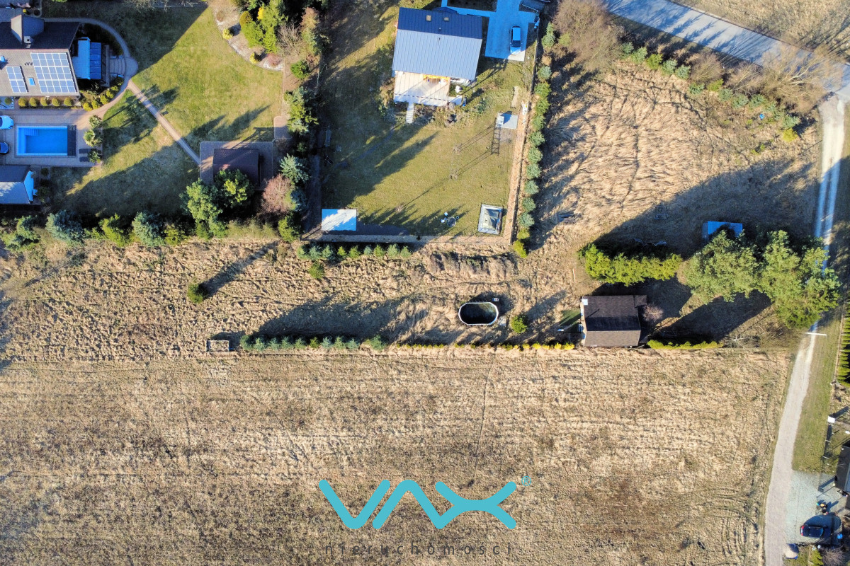 Działka o szerokości ok. 18 m, częściowo obsadzona sosnami - naturalny klimat i prywatność od pierwszego dnia