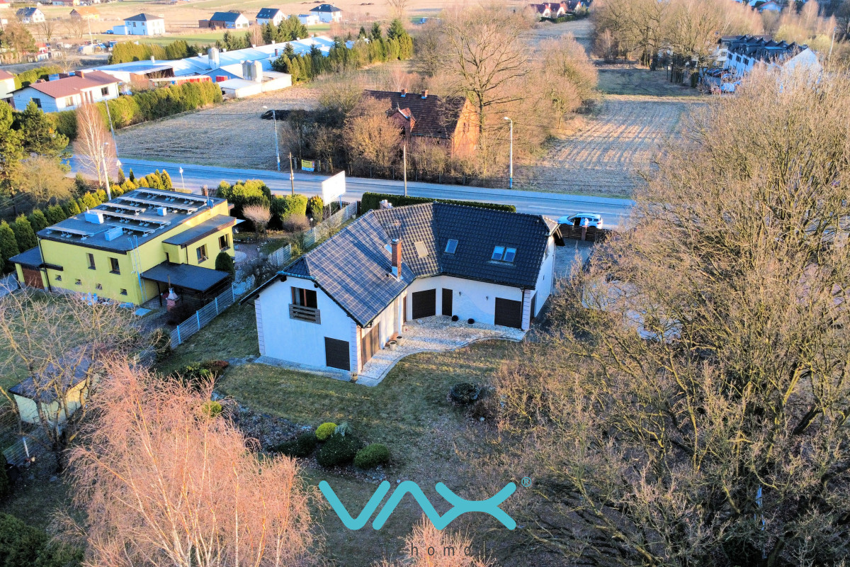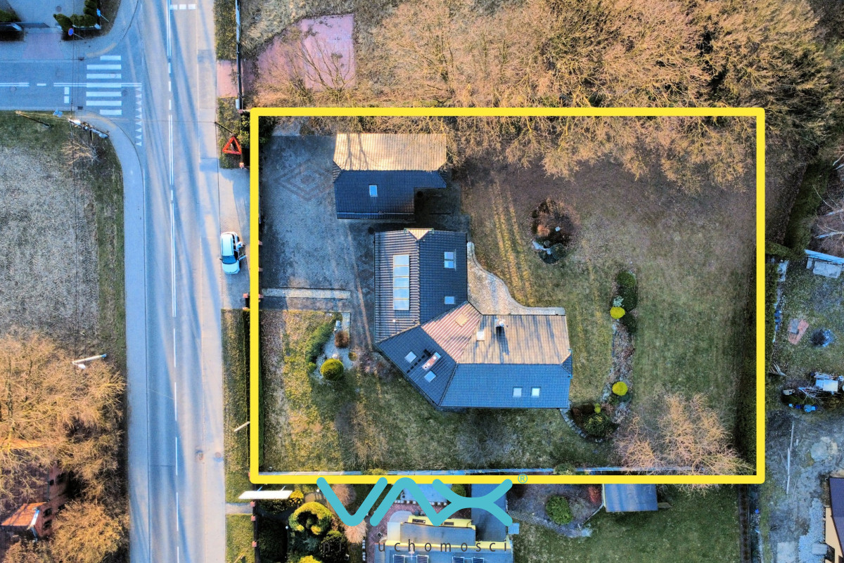 Na działce o powierzchni 2.241 m² znajdziemy urządzony ogród, taras i garaż na dwa auta.